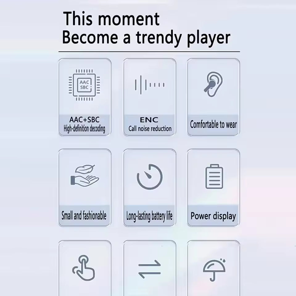 Bluetooth-Compatible Noise Canceling Translucent Earphones with Digital Display Charging Case Small Ear Buds for Sports Working